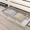 Das Hack Regal für Schrankzubehör hat ein minimalistisches Design, das sich durch seine strukturierte Oberfläche in Steingrau oder Schwarz auszeichnet, was der neueste Trend bei der Gestaltung von Schränken in Schlafzimmern und Ankleidezimmern ist. Es erreicht eine komfortablere Kleideraufbewahrung dank seines sanften Schließens und der teilweisen Extraktionsführungen, die es ermöglichen, den Rahmen langsam und leise zu öffnen und zu schließen, um Stöße zu vermeiden, sorgen für eine komfortablere Kleideraufbewahrung und verdecken die Führungen.