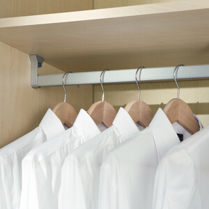 Los soportes Silk están fabricados con acabado gris metalizado y son compatibles con barras de armario de sección 30x15 mm. Su diseño permite dos tipos de montaje para mayor versatilidad.