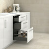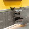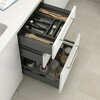 El juego de barandillas para cajones de cocina y baño está diseñado para optimizar el montaje de cajones grandes y profundos, como caceroleros, aumentando su capacidad de almacenamiento. Su instalación es rápida y sencilla, ya que no requiere mecanizado en la parte trasera del cajón, permitiendo ajustar la altura fácilmente.