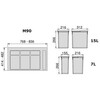 Disponibles para módulos de 60 cm, 80cm y 90 cm de ancho y con dos alturas distintas de contenedores, lo que permite tener distintas configuraciones con una capacidad útil desde los 24 litros a los 44 litros.