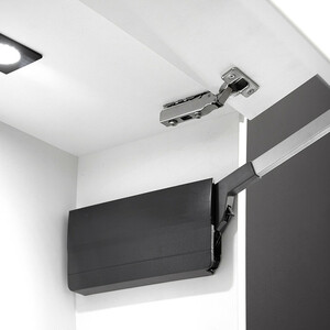 Para módulos de dos puertas simétricas, únicamente la puerta superior requiere montaje con bisagras. Tiene tres regulaciones: ajuste de la fuerza del mecanismo, posición de la puerta tridimiensional ±2mm y velocidad del cierre suave.