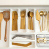 Porte-couverts pour tiroirs de cuisine avec un design droit et une grande capacité de rangement pour les couverts et autres ustensiles de cuisine, tirant le meilleur parti de l'espace. Il est fabriqué en plastique et son installation est extrêmement rapide et facile.