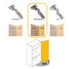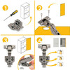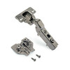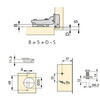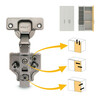 The X91 half overlay hinge kit with soft closing and insert is designed to ensure quiet closing and easy installation. It includes a hinge with a bumper piston, three-dimensional adjustments and a compatible plate for easy mounting on doors from 14 to 24 mm thick.