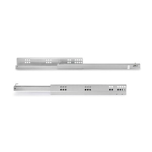 Le guide a scomparsa Silver L sono ideali per cassetti di piccole dimensioni che richiedono una chiusura parziale estraibile e morbida. Realizzate in acciaio e dal design compatto, sono in grado di supportare un carico fino a 25 kg per coppia di guide.