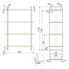 It includes 4 shelves of 690 mm length and 19 mm thickness, made of a high quality board with an oak finish. It supports a maximum weight of 30 kg per shelf.